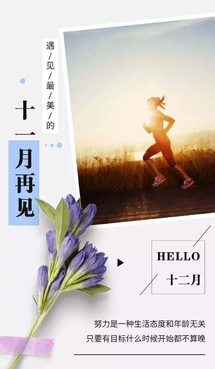 11月再见,12月你好,人生总会有不期而遇的温暖 和生生不息的希望 在不经意间出现在你的生命里 只要你还愿意努力 世界会给你惊喜 越努力越幸运!