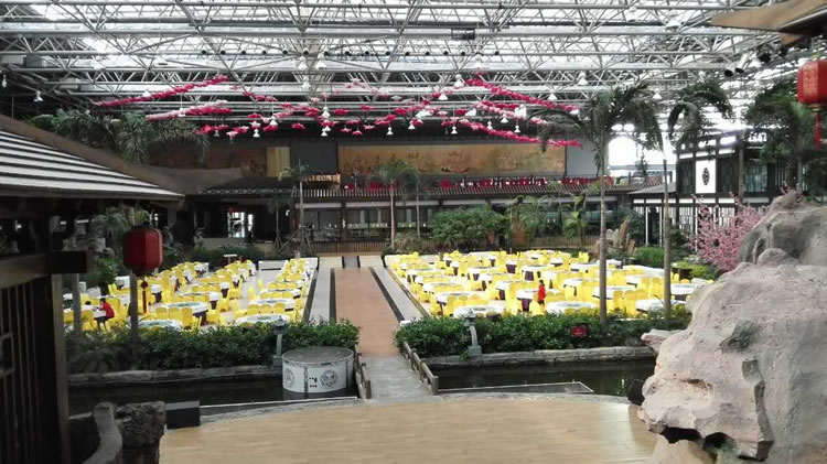 汉风唐韵主题生态餐厅经营面积7000平米、各具特色的建筑形式和装修风格浑然不同的包间30余个,散座餐位900余位,可承接各种婚宴、寿宴、生日喜宴、生意洽谈、中秋赏月、元宵晚宴、重阳宴、春节年宴、朋友聚会、公司答谢宴、集团团拜、旅游团队、福禄寿喜等各种私人和商务宴会。餐厅立意文化与生态的完美融合,美食与健康的科学互补、既有中国传统菜系的精髓,又凝聚了国内外健康饮食的新创。